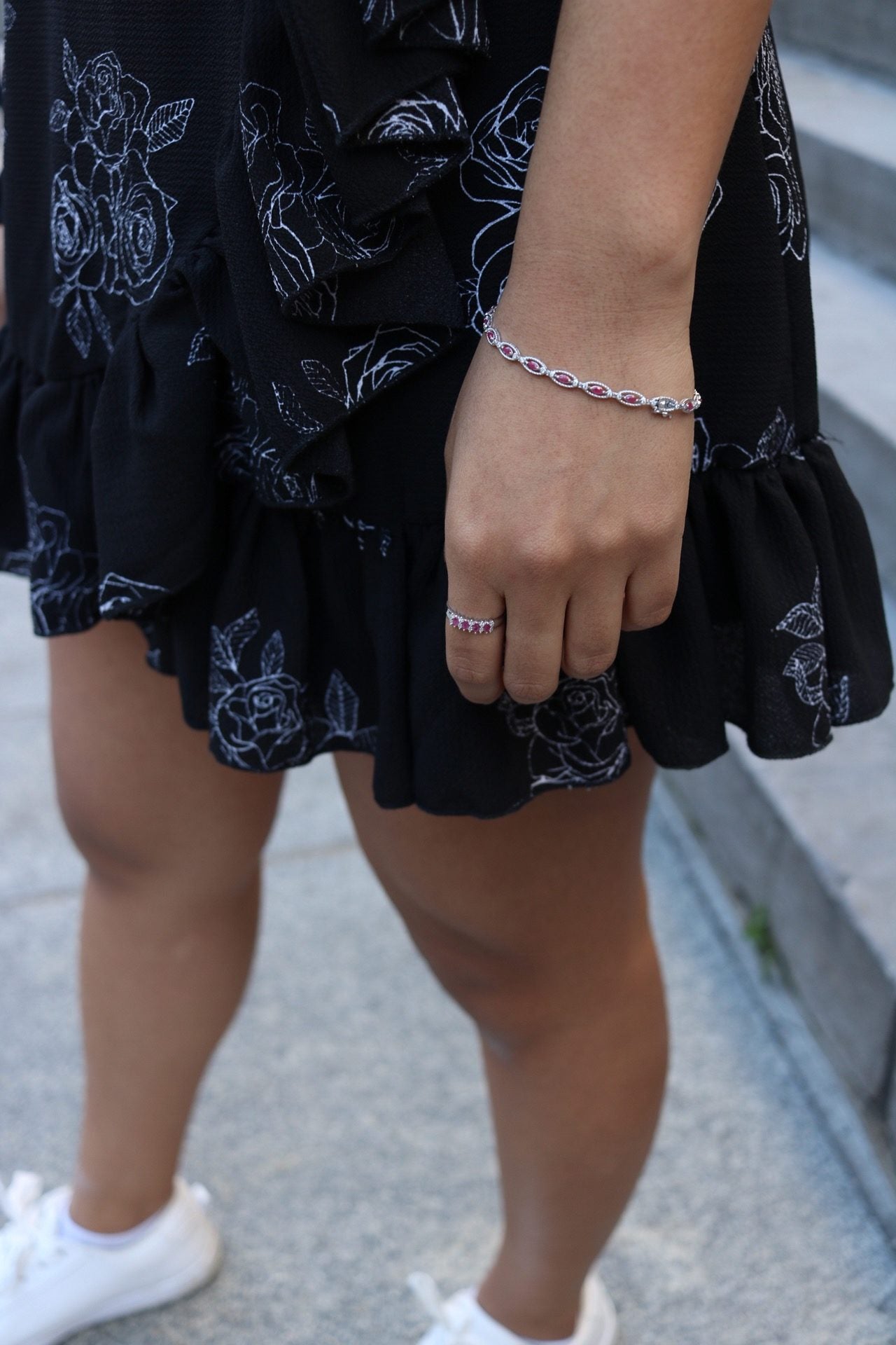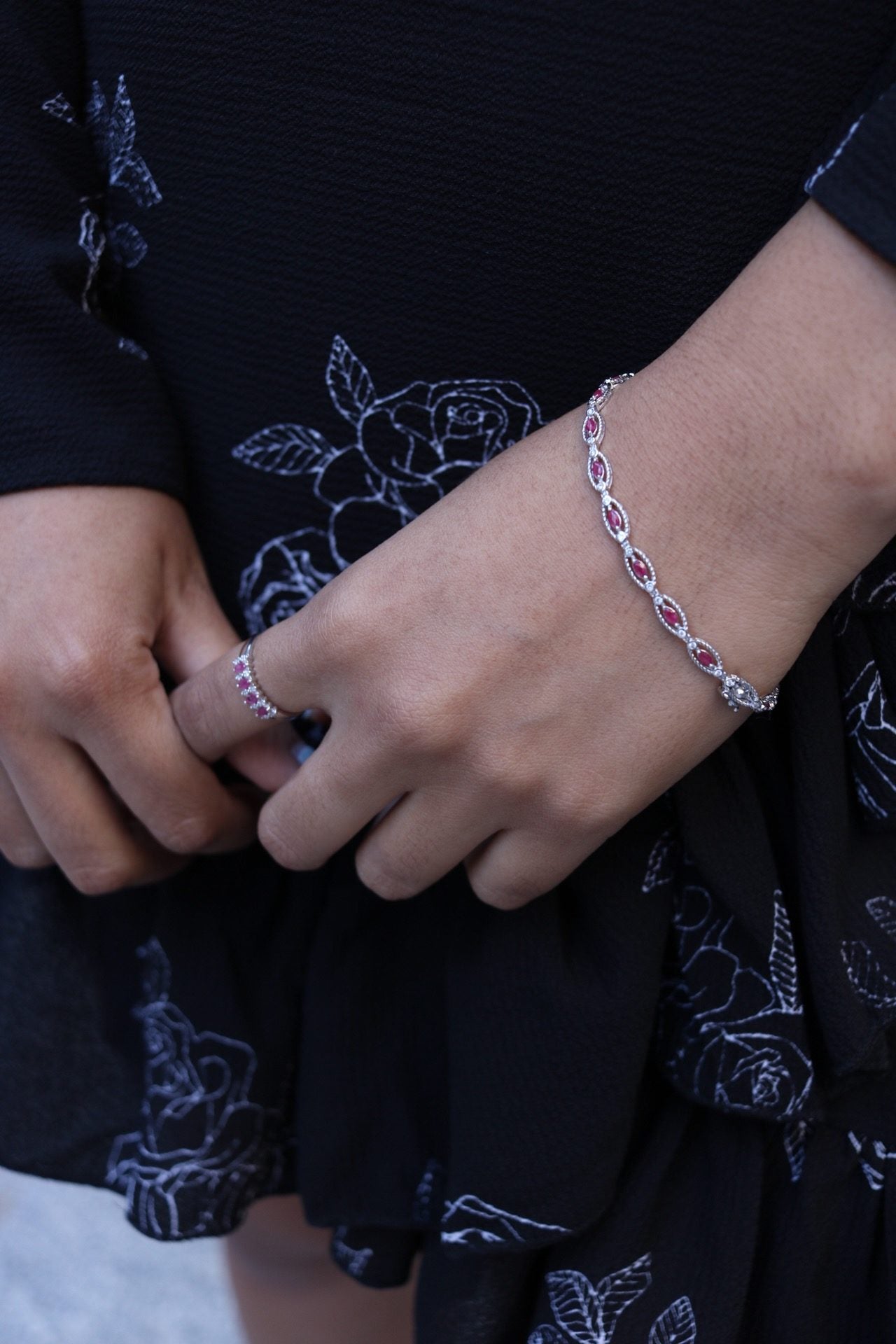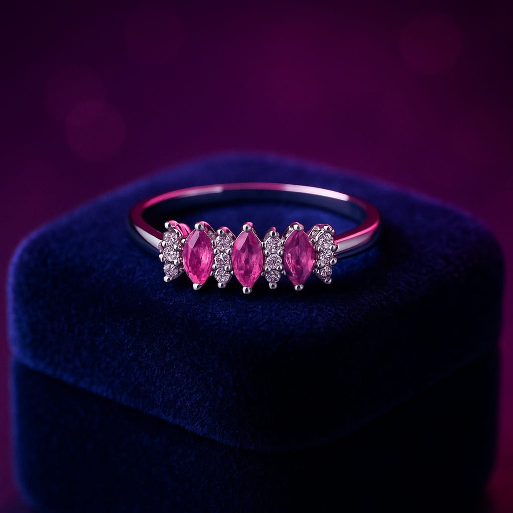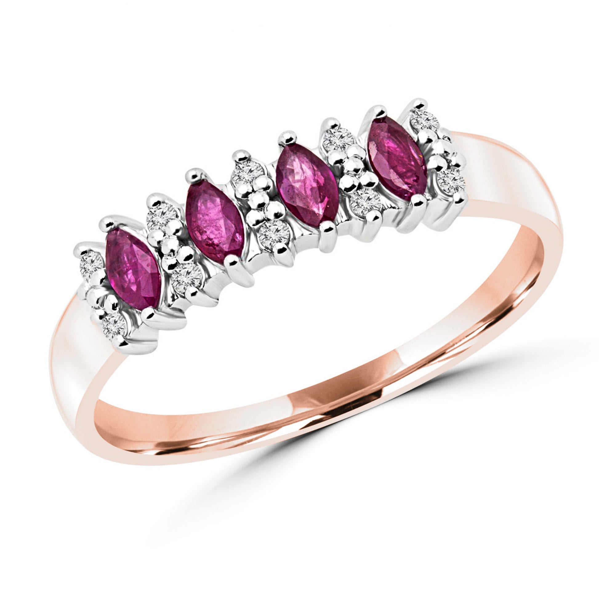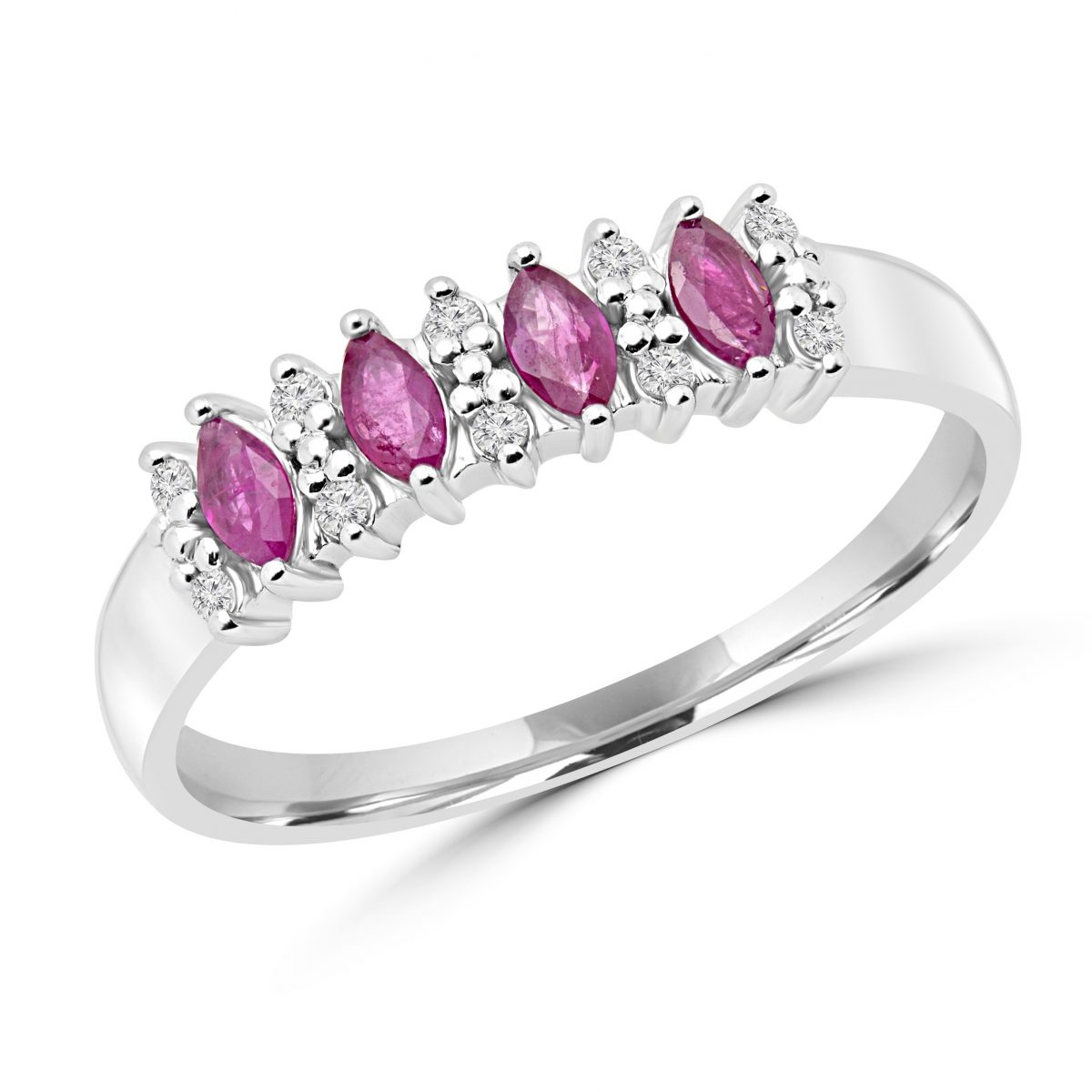 Marquise cut ruby & diamond fashion cocktail ring in 10k white gold