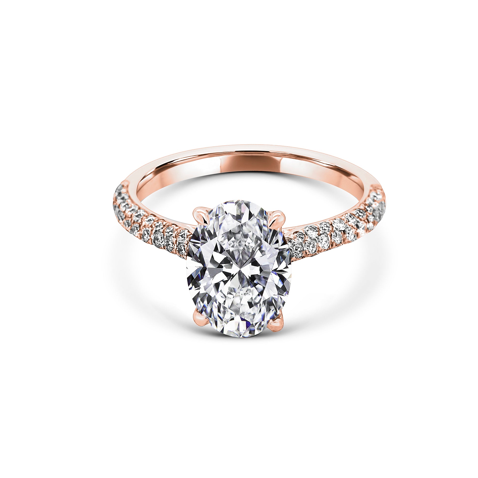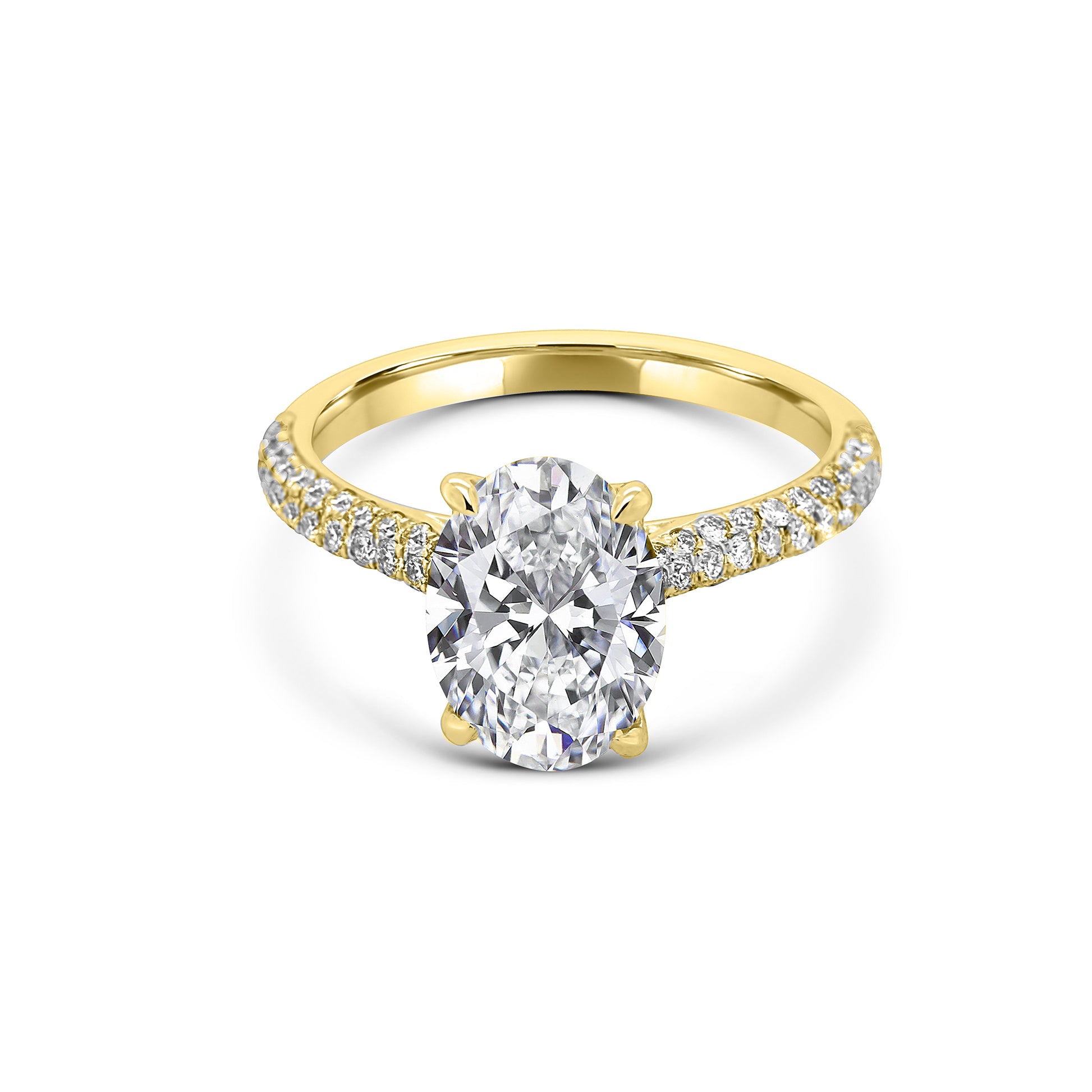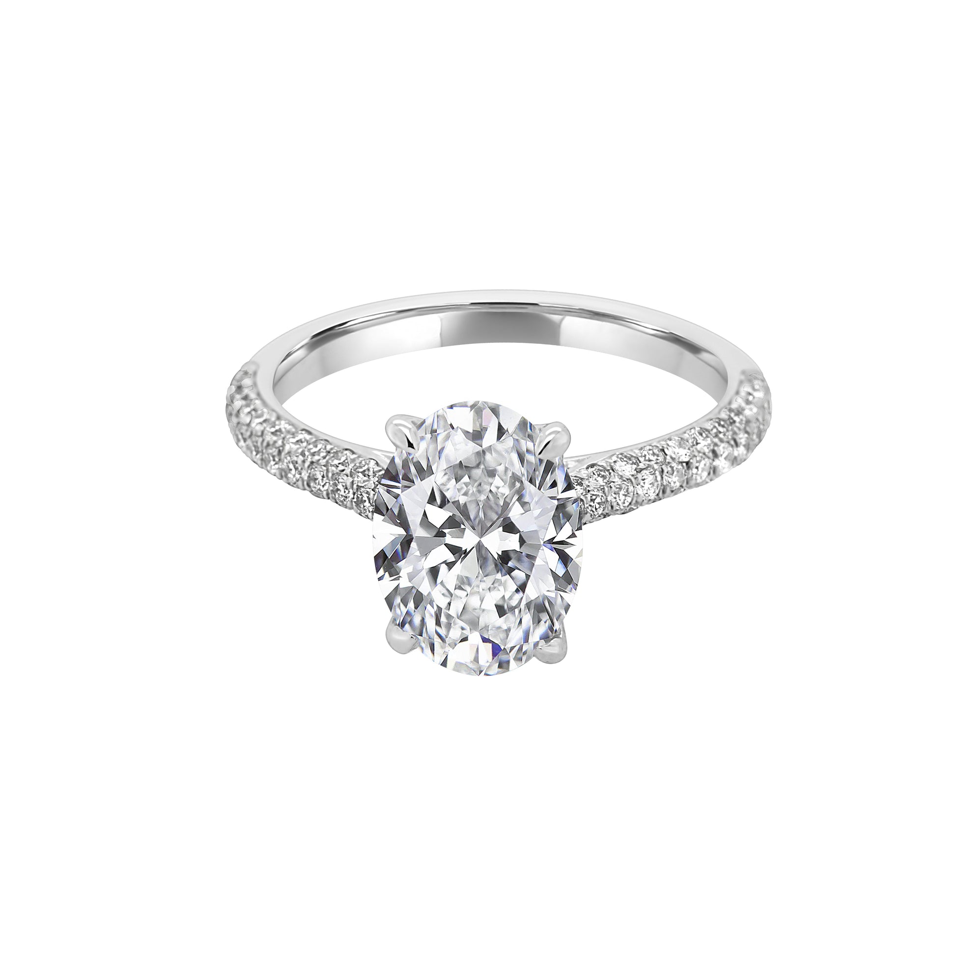 Pave setting Oval cut lab-grown solitaire diamond 3.41 (ctw) in 14k gold