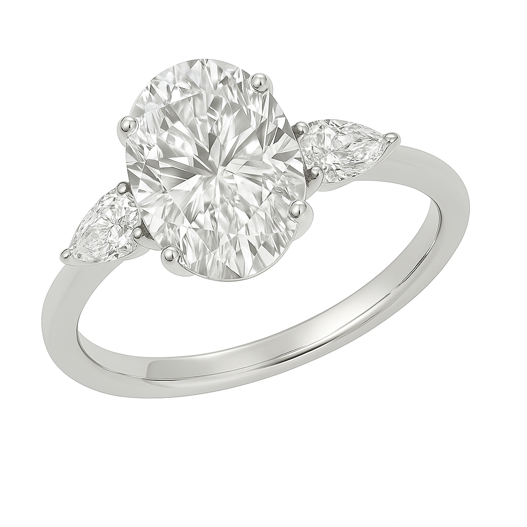 Oval pear trinity ring Lab-Grown diamond 2.61 (ctw) in 14k gold