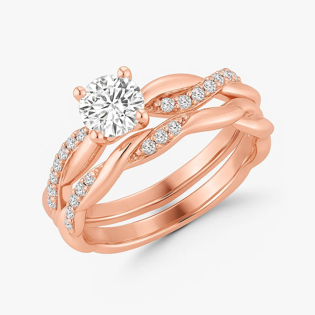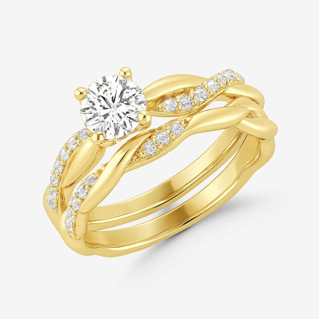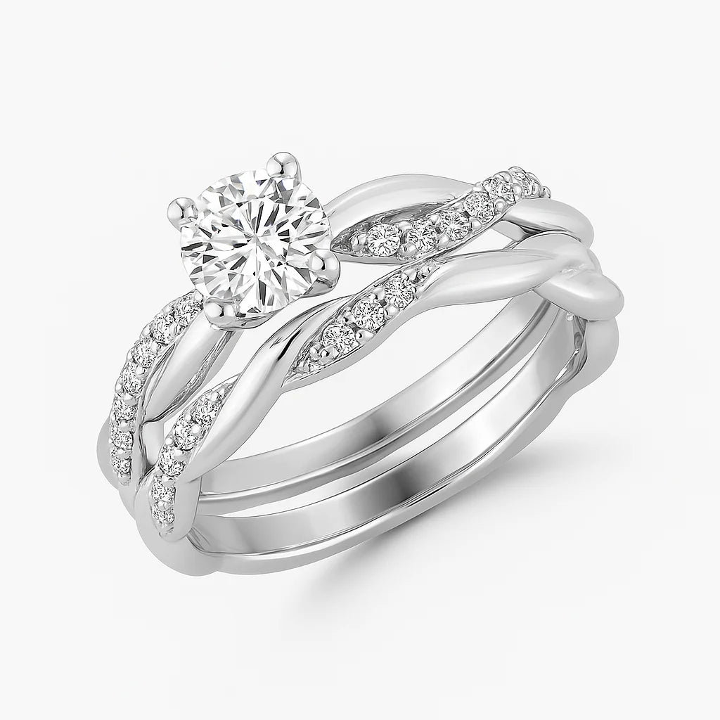 0.90 Carat (ctw) Twisted Diamond Bridal Set in 14k White Gold