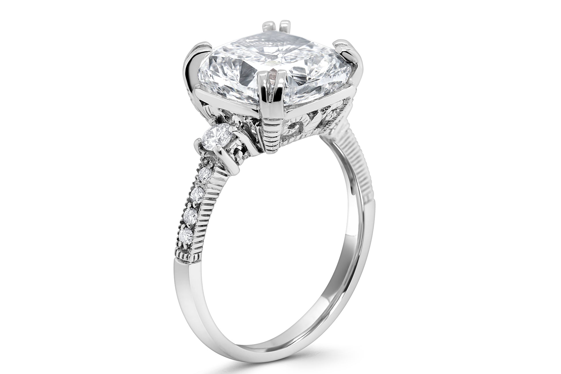Vintage Cushion cut lab-grown solitaire diamond ring 5.23 (ctw) in 14k gold